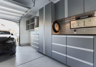 Primo Garage offers a comprehensive range of garage enhancement services, including durable epoxy and polyaspartic floor coatings, custom garage cabinets, and versatile storage solutions, all designed to transform cluttered garages into efficient, stylish, and highly functional spaces.
