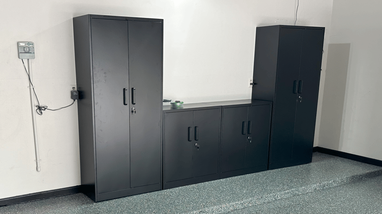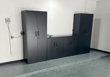Primo Garage also offers a very affordable line of standard black locking steel cabinets that can help you get organized on a budget. Contact us today to get a price quote on this affordable option. You will be pleasantly surprised by the price.