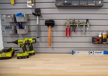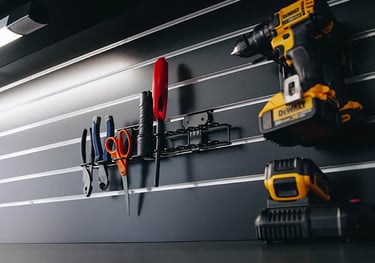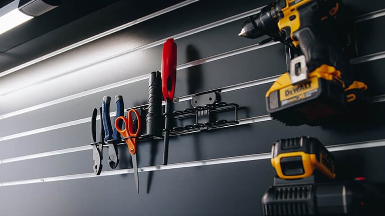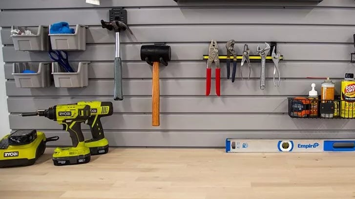 PVC Slatwall is a great way to organize your tools and other items you want to have quick access to. While it doesn't keep them hidden and out of the way, they can still be neat and organized and PVC is very durable and easy to clean.