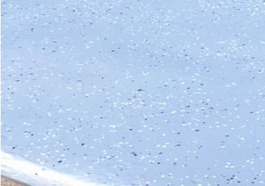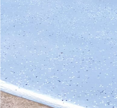 We then add vibrantly colored Torginol polymerr flakes, ensuring full coverage and an attractive finish. Our topcoat is not just any polyaspartic coating—it's formulated for maximum strength and UV resistance, ensuring your floor remains vibrant and resilient against sun exposure and wear.